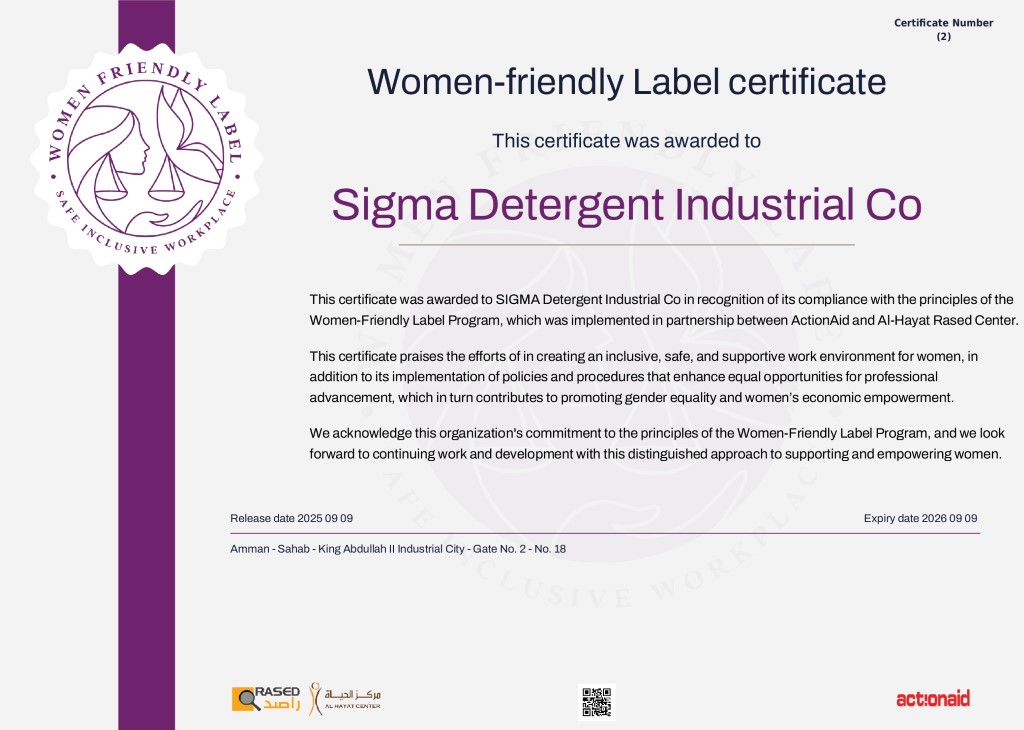 شركة سيجما حائزة على شهادة الأيزو 9001 و جي ام بي ، فهي ملتزمة بتطبيق أنظمة الجودة ومبادئ الإدارة الحديثة